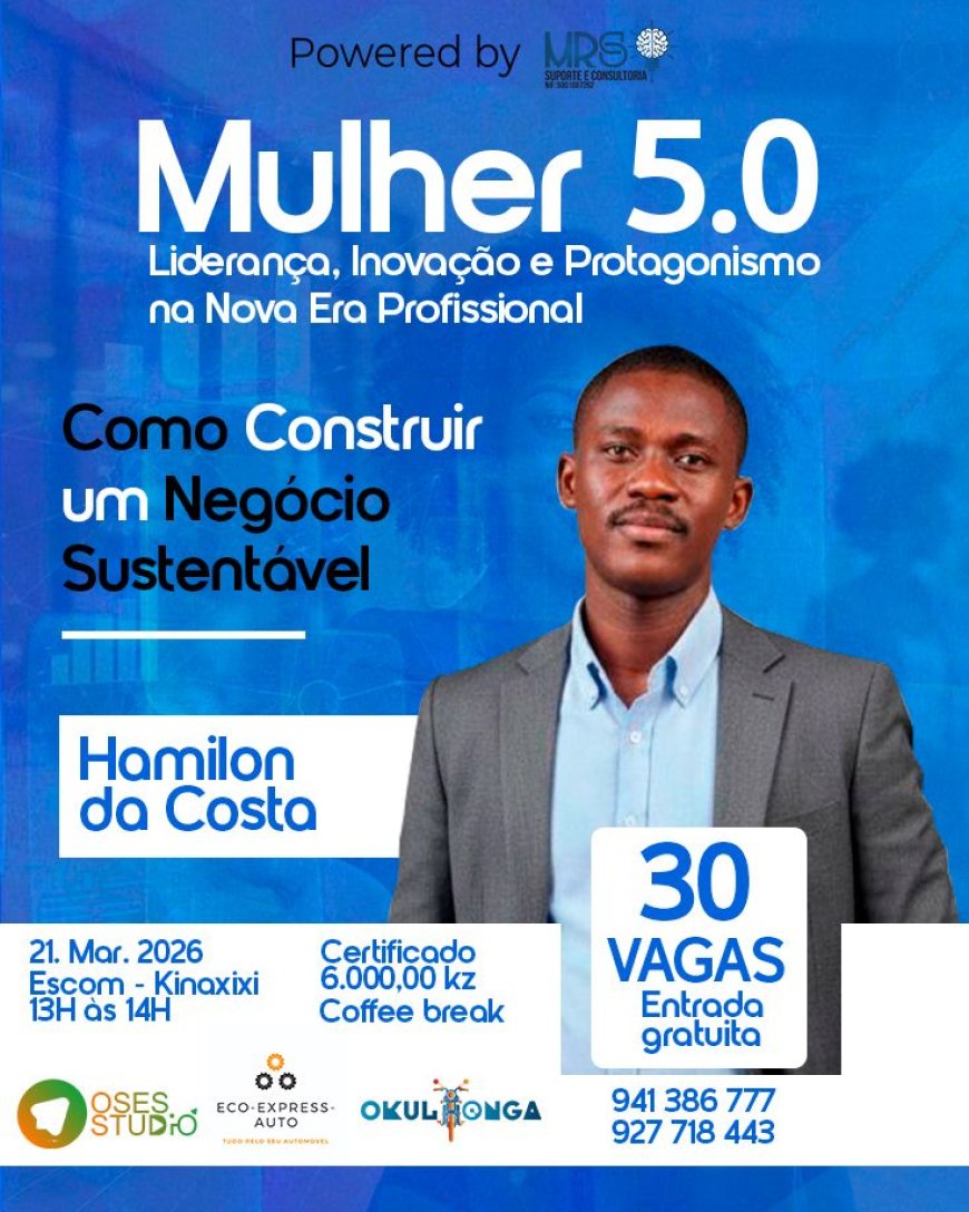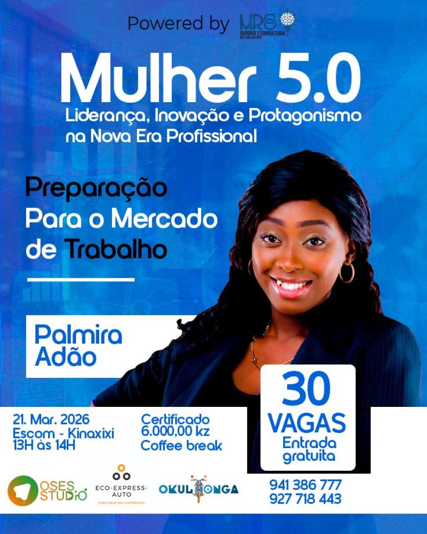 No próximo dia 21 de março, a ESCOM-Kinaxixi acolhe a realização da actividade “Mulher 5.0: Liderança, inovação e protagonismo na nova era profissional”, um encontro dedicado à valorização do papel da mulher no contexto das transformações do mercado de trabalho.