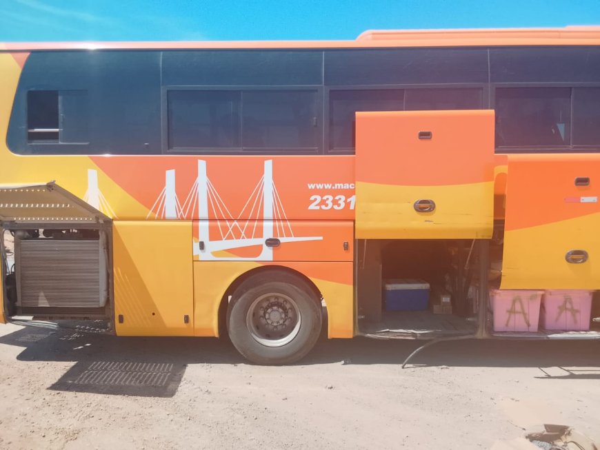 NOTÍCIA URGENTE: AUTOCARRO DA EMPRESA MACON SOBREAQUECE EM MENOS DE 30 MINUTOS APÓS PARTIDA NO NAMIBE COM DESTINO A LUANDA